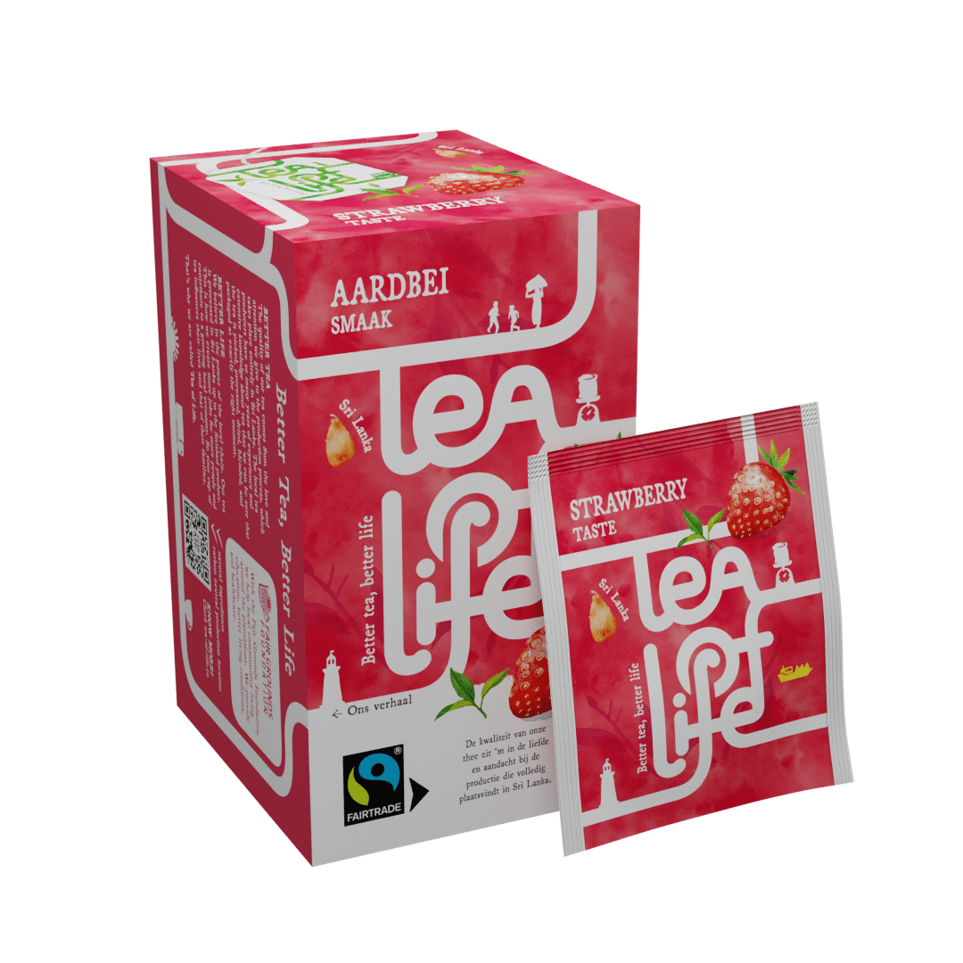 Deze Zoete, romige aardbeienthee met echte stukjes aardbei van Tea Of Life is een mooie combinatie met volle zwarte thee. Deze fruitige thee kun je elk moment van de dag drinken.